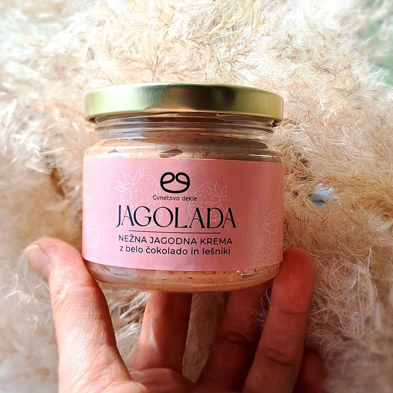 Sestavine: Bela čokolada (sladkor, kakavovo maslo, mleko v prahu, emulgator (sojin lecitin), naravna aroma vanilije.), smetana za stepanje (UHT(segreta na ultra visoki temperaturi), homenizirana sladka smetana s 33% mlečne maščobe in dodanim stabilizatorjem (karagenan)), lešniki, sladkor, voda, liofilizirane jagode, sol.